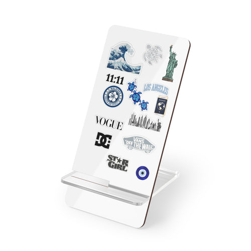 Acrylic Phone Stand with Sticker Collage Design — Foldable Mobile Display Stand